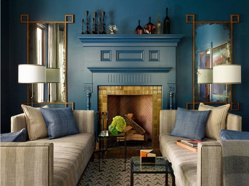 Не стоит также недооценивать значение небольших декоративных деталей. Ведь пространство вокруг камина буквально создано для них. Необычной формы решетка, различные фоторамки, шкатулки и вазочки лишь украшают помещение.