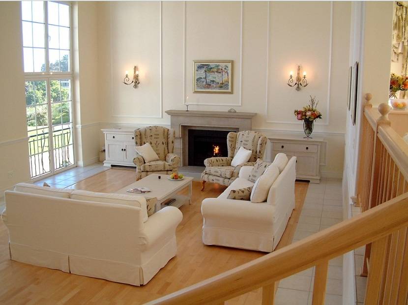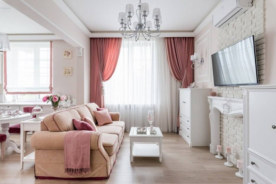 Рекомендуем обратить внимание на светлые теплые тона. Они сделают гостиную еще более уютной
