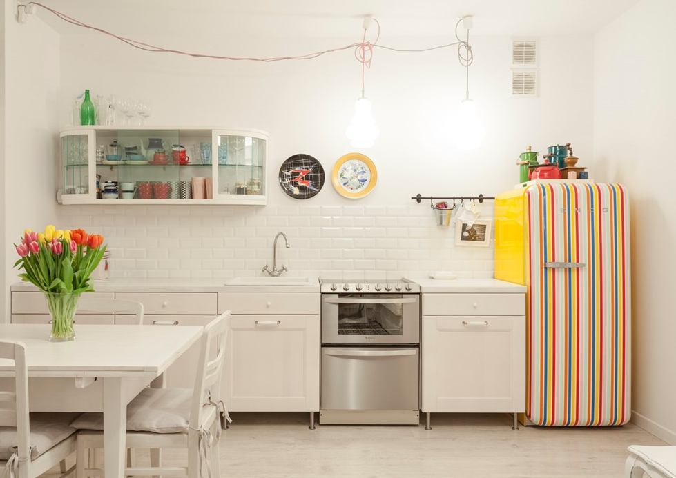 Для кухни и ванной комнаты берите белую плитку прямоугольной или квадратной формы, матовую или глянцевую — не так важно. Раскладка кафеля (вертикальная или горизонтальная) зависит от вашего вкуса и пропорций помещения