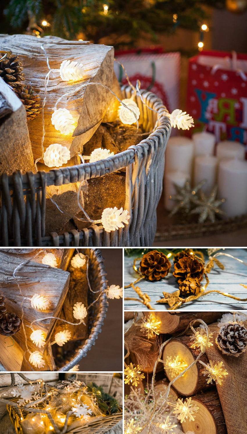 Сверкающие гирлянды, размещенные в колоритной корзине среди шишек, извилистых сучьев, хвойного лапника создают ощущение комфортного тления угольков в источающем тепло костре. Такой симпатичный светильник приятно включать в вечерние сумерки после трудного дня не только в новогодние праздники.