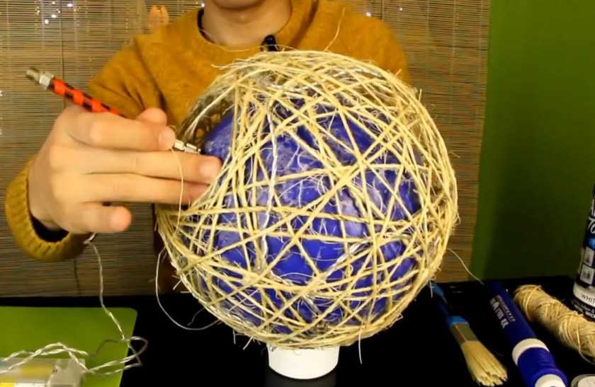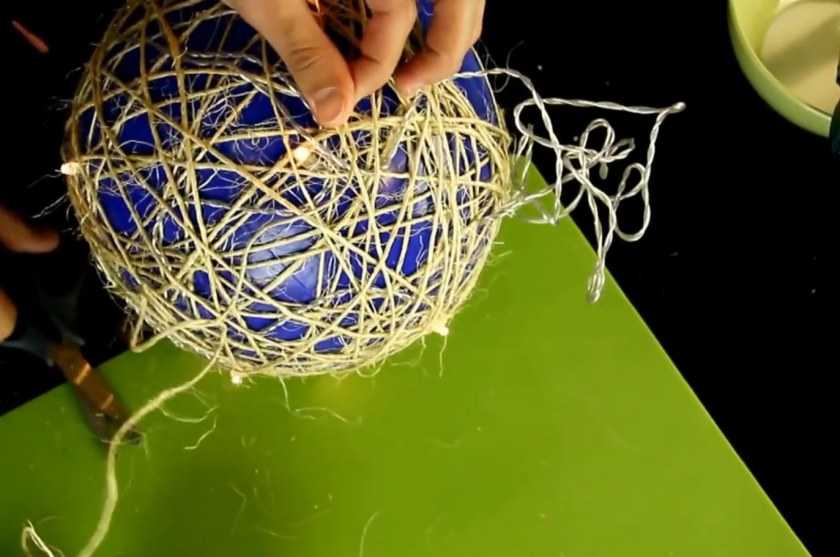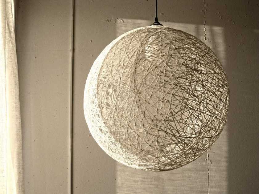 Оборачиваем воздушный шар ниткой. Необходим подождать, пока высохнут нитки. Лопаем шар. Такой аксессуар отлично подойдет в виде абажура на лампу.