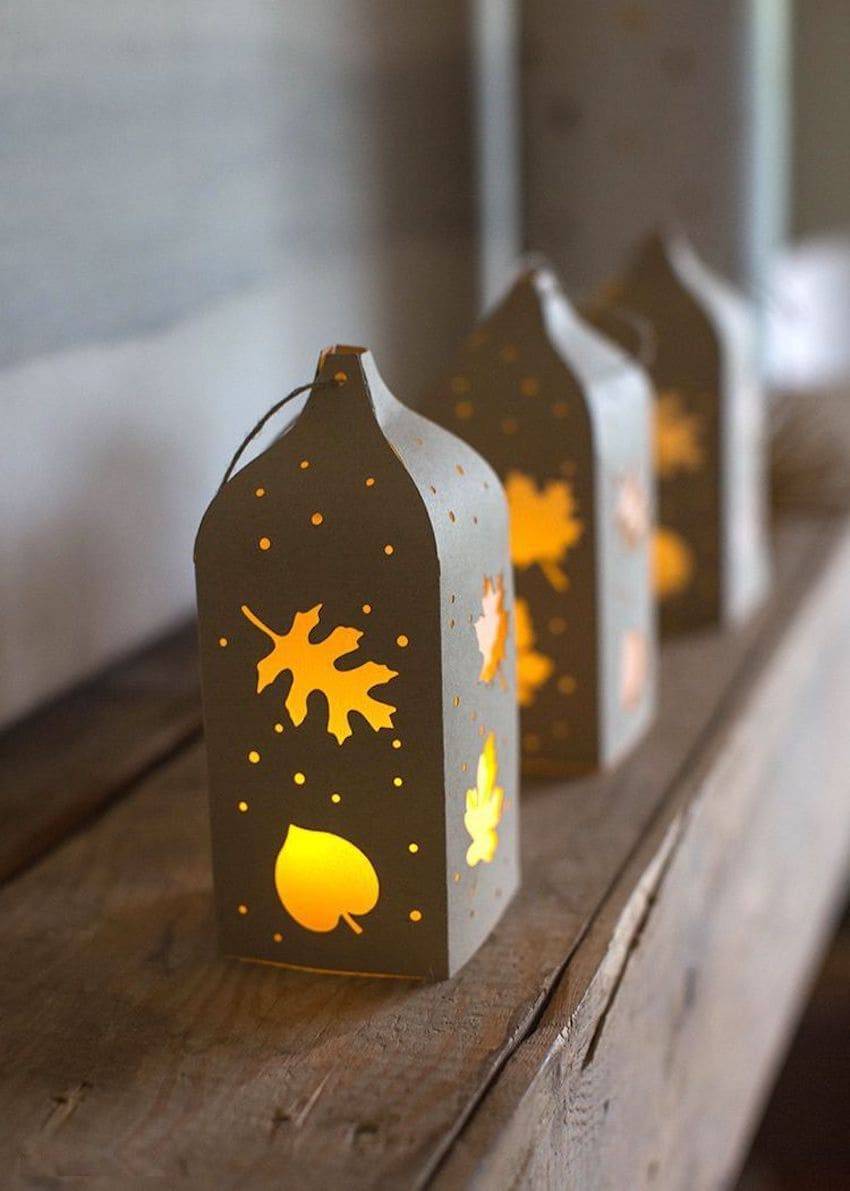 Для этого удивительного светильника вырезают детали из плотного картона, предусматривая фиксацию на основе. С изнанки закрепляют светодиодную гирлянду, которая при включении создает фантастический эффект.