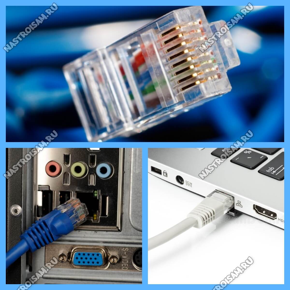 Начинаем с Ethernet-кабеля, который монтёр провайдера привёл в квартиру. У него на конце разъём RJ45. Так как роутера у нас нет, то этот кабель надо подключить к сетевой карте компьютера или ноутбука — у них так же для этого есть соответствующий порт. У ПК он расположен сзади корпуса, где находятся и все остальные его порты и разъёмы.