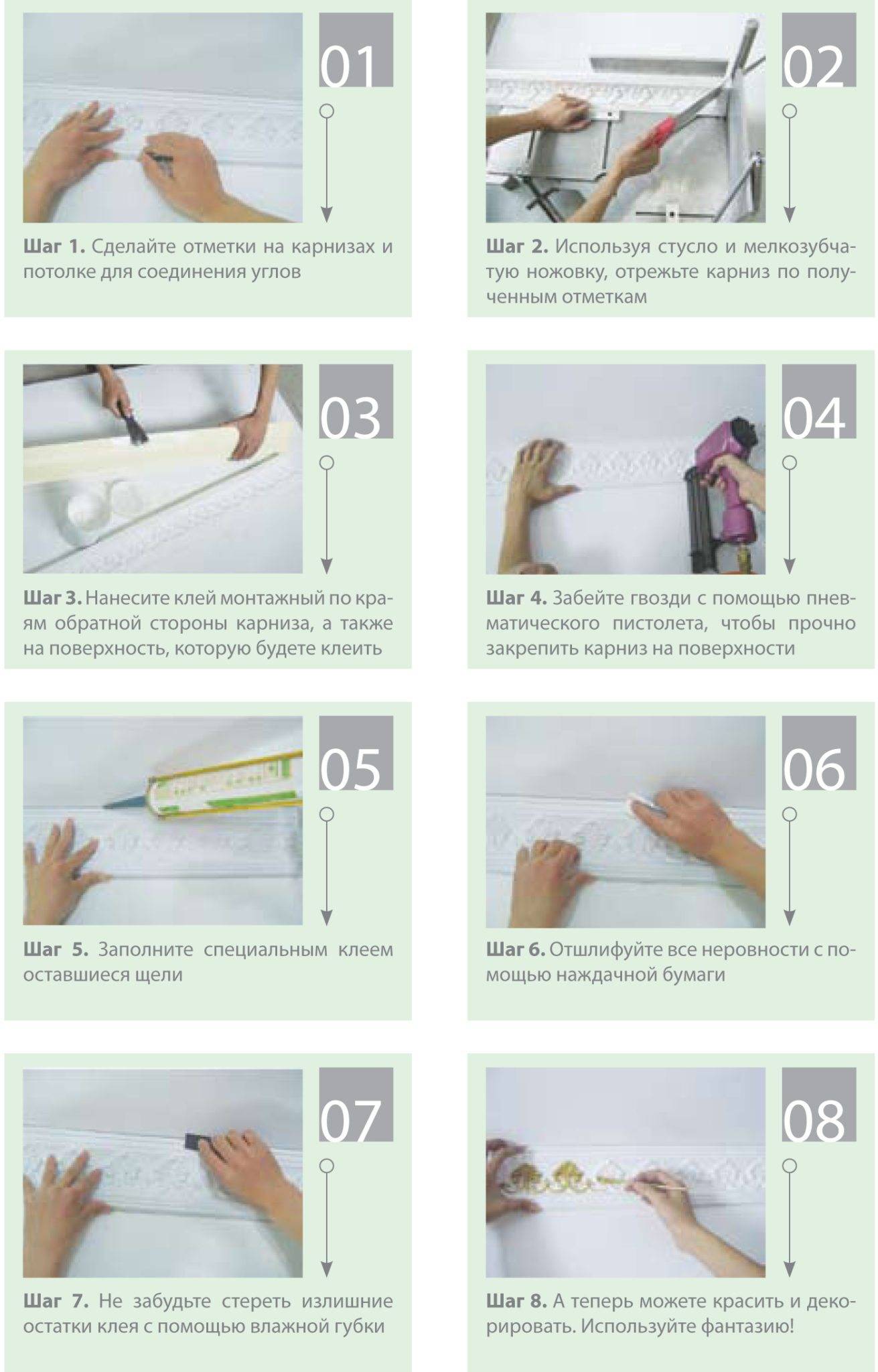 Инструкция по монтажу лепного плинтуса на потолок в картинках