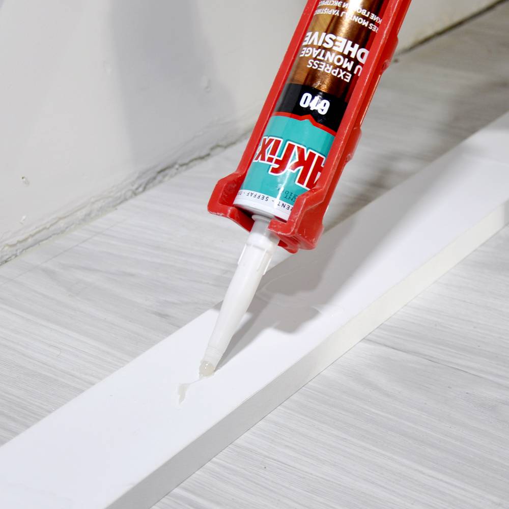 Внешний вид и поведение клея напоминают таковые у монтажной пены. После нанесения клея тонким слоем он постепенно расширяется, излишек вылезает за пределы шва. По мере полного застывания его можно будет аккуратно отрезать ножом, стамеской. Данный состав имеет массу достоинств: