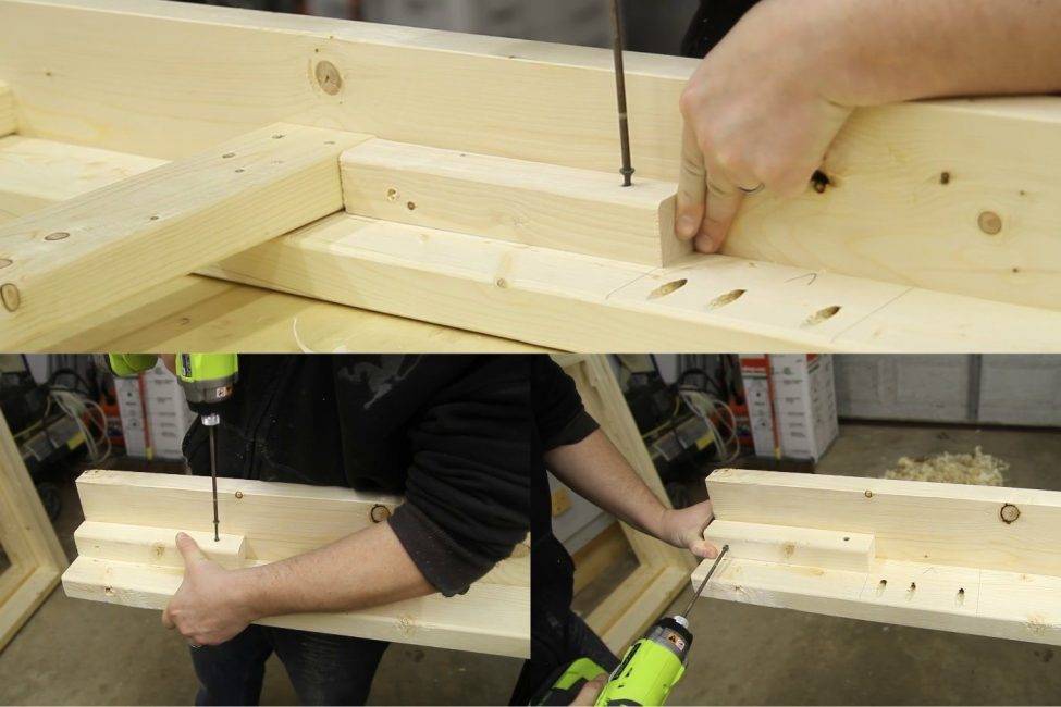 Шаг 9. Так, фиксация брусков производится вдоль грани элемента-опоры для спального места