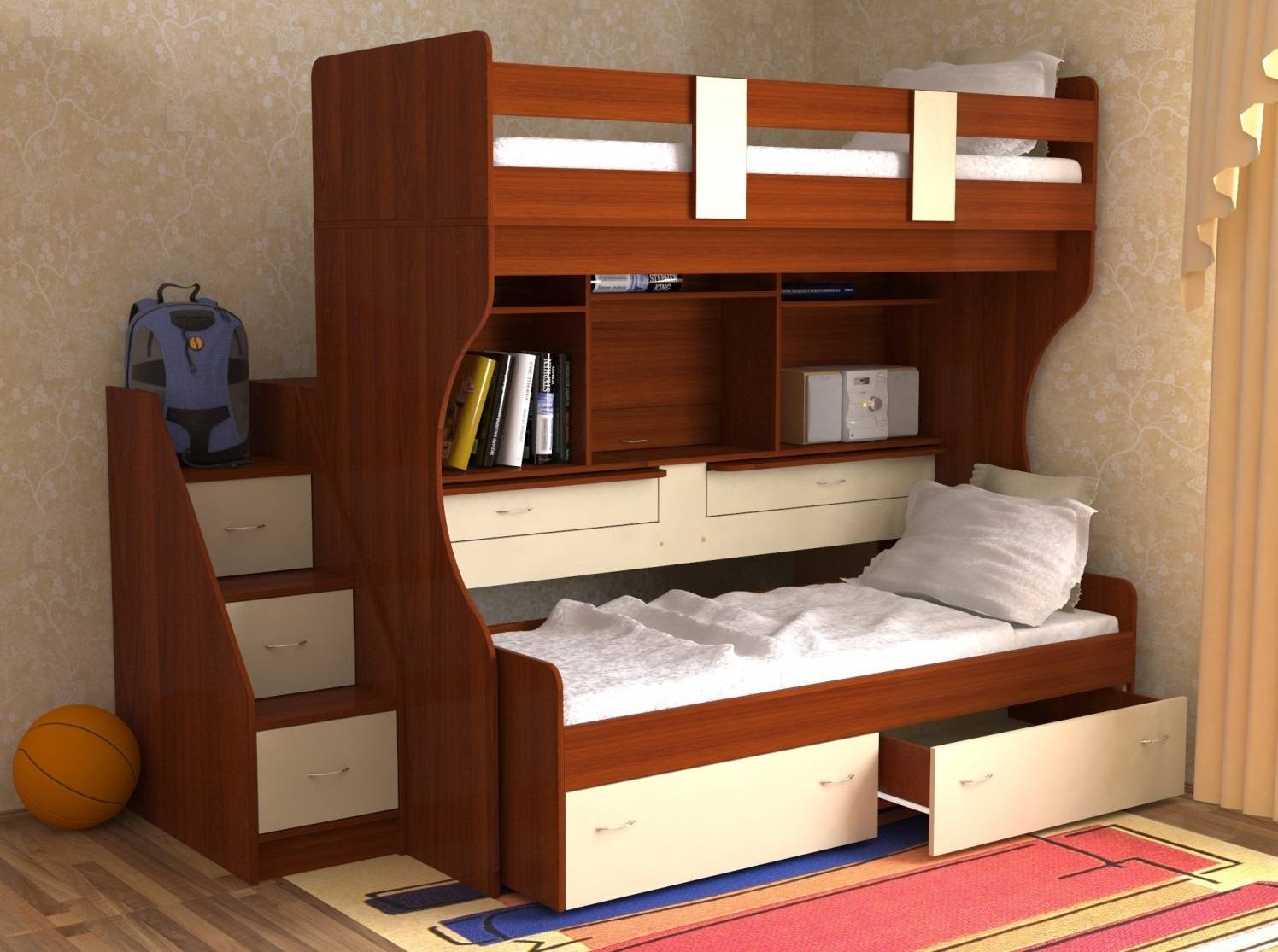 Что касается минусов, то двухъярусные кровати довольно тяжело переставить при необходимости. Для аккуратной смены месторасположения придется частично разобрать изделие (в особенности это касается многофункциональных модулей). Также они малопригодны для детей возрастом до 6-ти лет. Даже при наличии прочной лестницы, высокого бортика гарантировать полную безопасность малыша при использовании такой мебели невозможно.