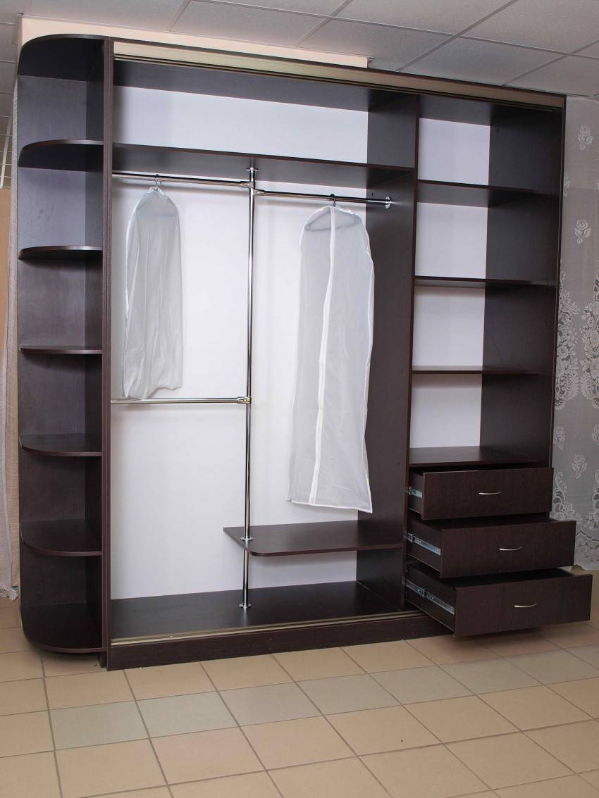 В общем длина шкафа может быть любой, но при этом количество створок нужно выбирать такое, чтобы створки были в размерах 60-90см. От количества створок зависит внутреннее пространство шкафа. Оно должно делиться на части вертикальными перегородками согласно количеству створок.