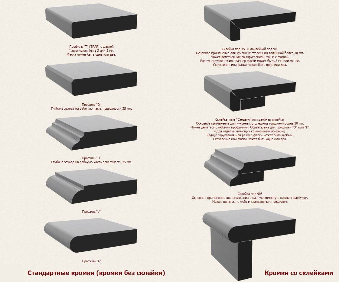 Здесь действует принцип: чем проще окантовка, тем дешевле конечная цена столешницы. Стоимость также зависит от толщины изделия.