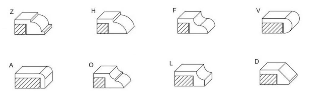 Формы торцов также можно обозначать в виде букв: Z, H, F, V, A, O, L, D.