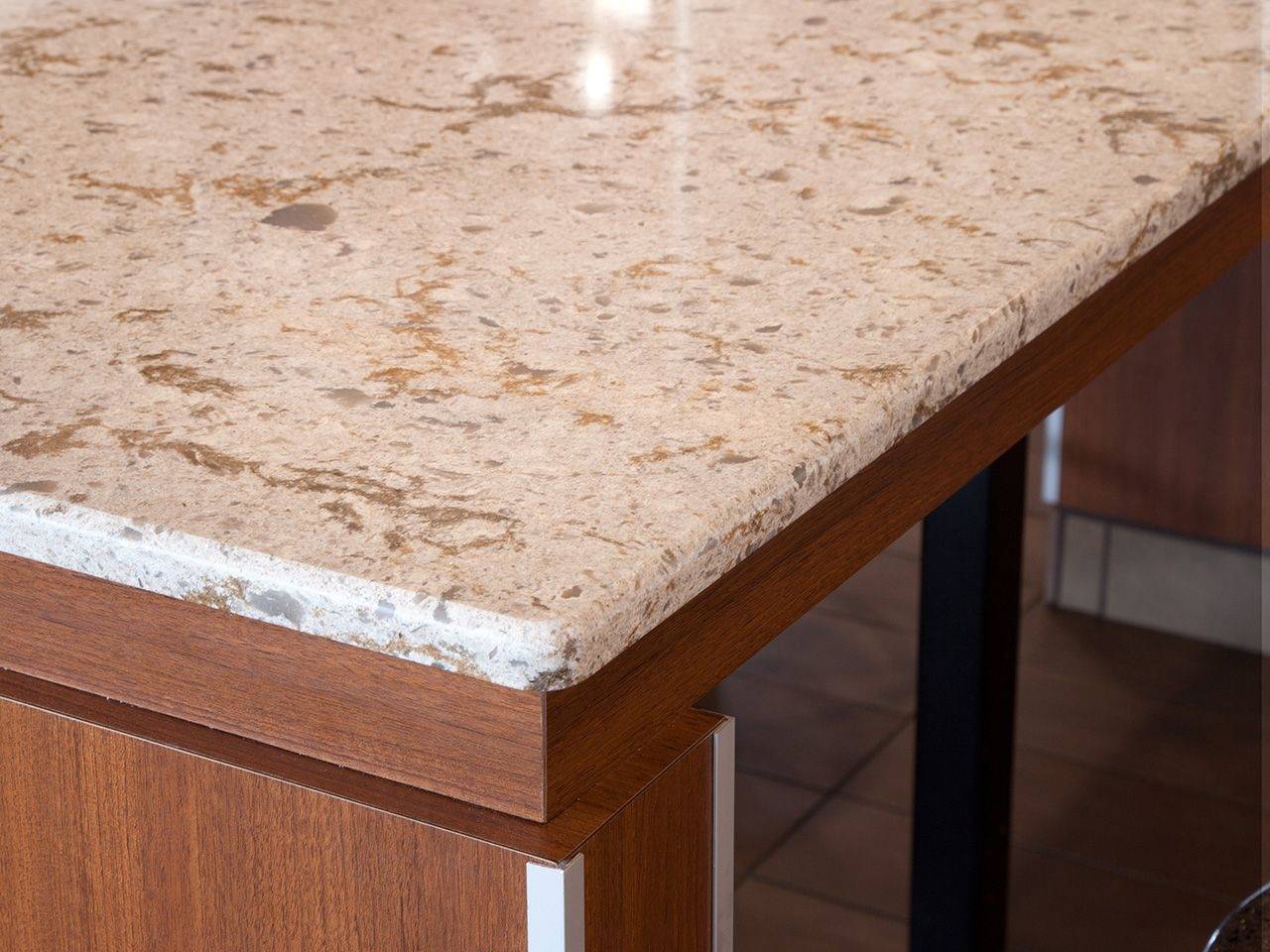 По своей прочности и устойчивости к различным повреждениям этот материал похож на гранит, благодаря высокому содержанию натурального кварца. Обработка представляет собой трудоемкий процесс, для которого необходимо дорогостоящее, точное оборудование и серьезный опыт работы. Стоимость готового изделия в большой степени зависит от способа обработки торцов и других деталей.