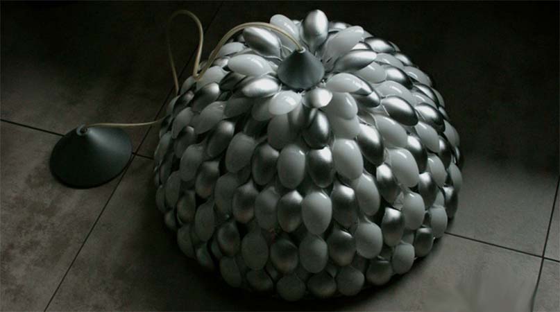 Интересная идея люстры из пластмассовых ложек