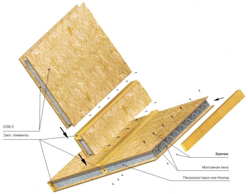 Монтаж этого вида СИП панелей происходит следующим образом: