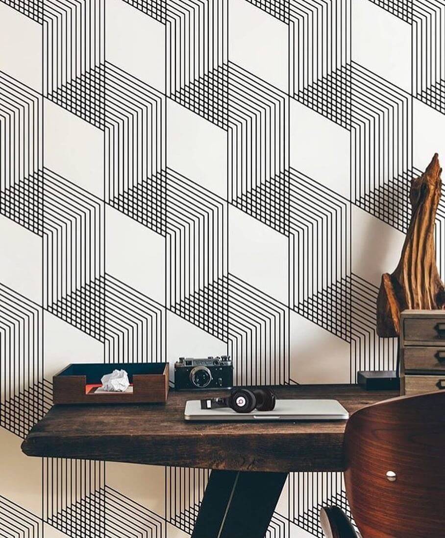 Геометрические узоры с 3D эффектом прекрасно подойдут для домашнего офиса или рабочего уголка.