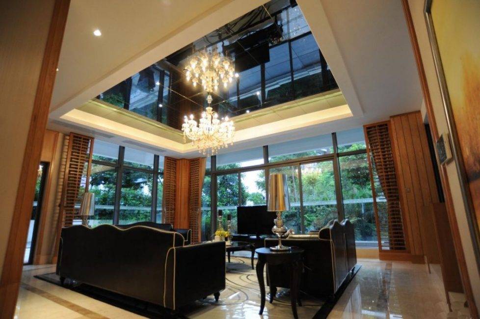 Зеркальные, черные потолки