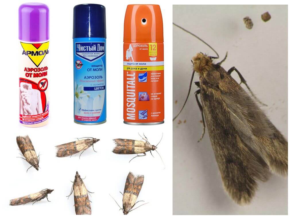 Наилучший результат в борьбе с платяной молью можно получить, если использовать эффективные инсектицидные препараты в домашних условиях самостоятельно при строжайшем соблюдении мер безопасности. В продаже имеется богатый арсенал средств, таких как аэрозоли, фумигаторы и отпугивающие секции. Рассмотрим более детально линейку этих приспособлений: