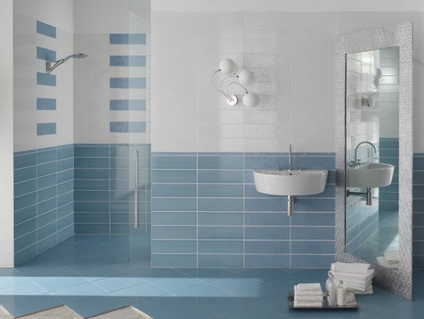 Если планируется сделать покрытие разноцветным, то лучше сначала разложить кафель на полу таким образом, как он будет уложен на стене, и посмотреть на то, что получилось