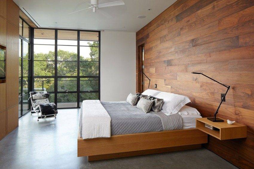 Оформление стены ламинатом в спальне