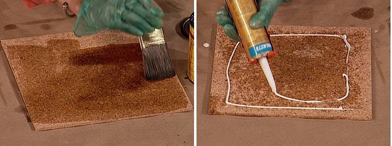 Спустя 3-4 дня, когда клей окончательно высохнет, затираются швы. Затирка любого подходящего цвета наносится резиновым шпателем. Образованные зазоры между покрытием и стенами, я также рядом с отопительными трубами, лучше заполнять герметиком на основе силикона, а не затиркой.