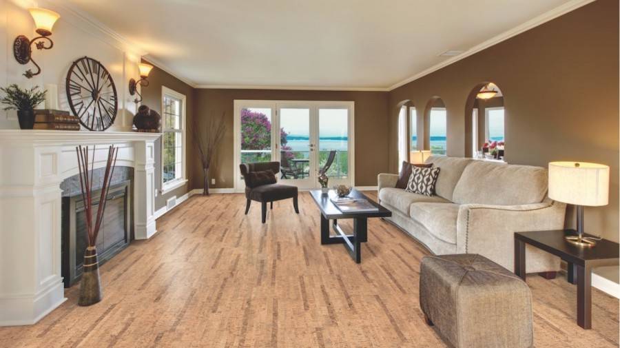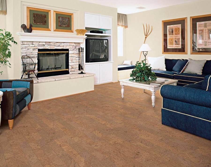 - Гостиная. Здесь лучше использовать пробковый ламинат, как и в любых других часто посещаемых помещениях. Пробковый пол даже при идеальном уходе за ним долговечностью не отличается.
