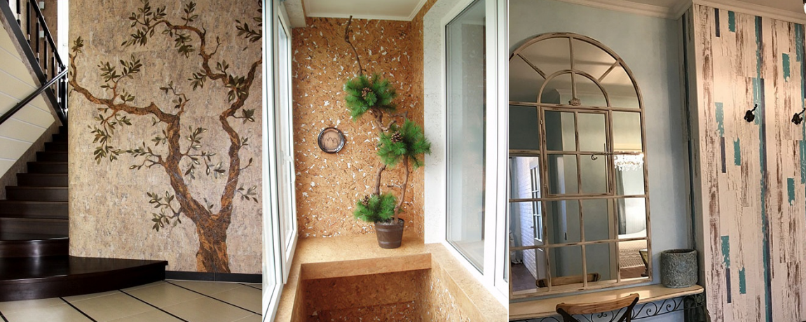 Совет! Полная отделка стен пробкой подойдет для просторного помещения. На маленькой площади эффектней будет смотреться частичная отделка — выделение функциональной зоны, части стены.