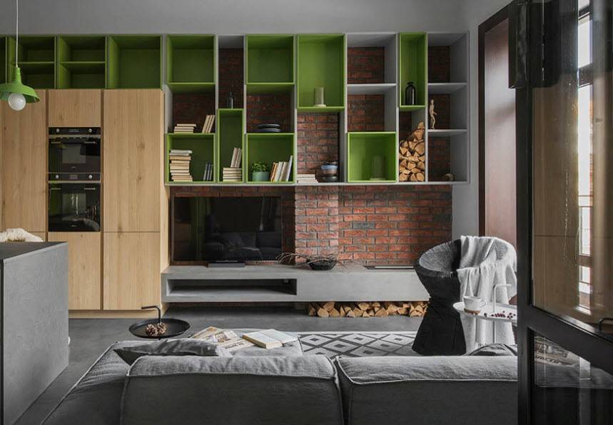 Стиль лофт эффектно смотрится не только в гостиной в небольшой квартире, но и в студии, так как лучше всего такой дизайн подходит для пространств с минимумом перегородок, обилием света и воздуха.