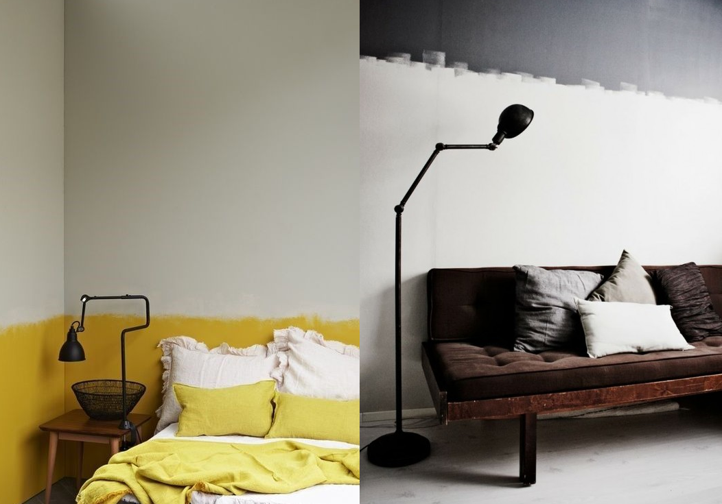 Границу можно сделать прямую и четкую, размытую, геометричную и даже нарочито небрежную, последняя создаст эффект недокрашенной стены