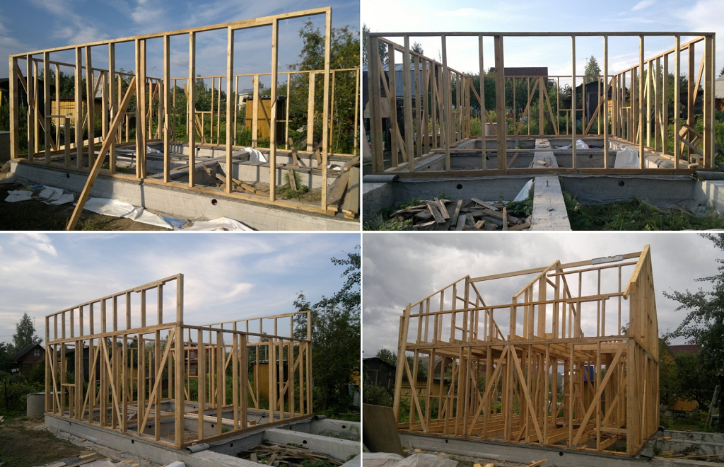 Галерея 1. Пример строительства одноэтажного каркасного дома с отделкой плитами ОСП