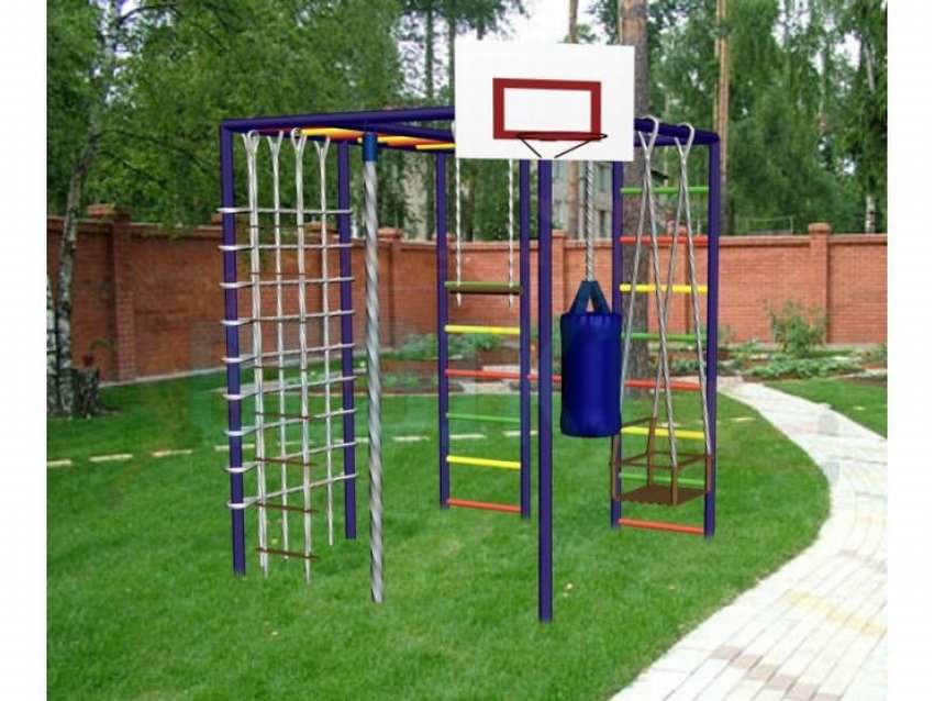 Для подростков или просто спортивных детей в спортивную площадку стоит добавить настоящие спортивные снаряды: боксерские груши, баскетбольное кольцо или брусья.