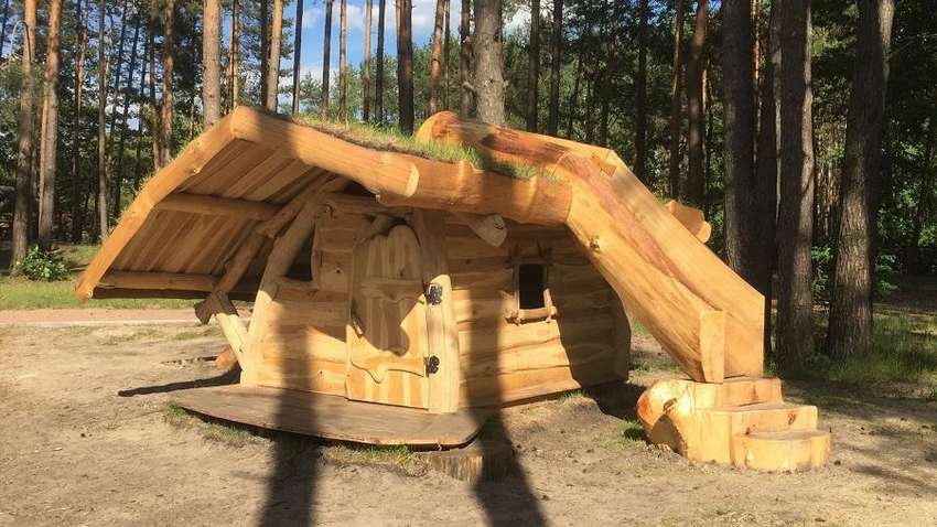 - Шалаш или конструкция с крышей. Малышам нужны маленькие домики. Их делают с песочницей или отдельно. В старшем возрасте дети сами могут соорудить шалаш, причем как на земле, так и на дереве.