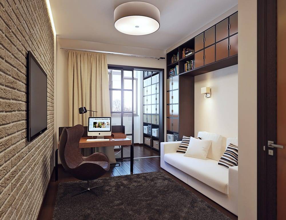 При достаточных размерах лоджии, ее можно превратить в самостоятельное помещение или за счет демонтажа перегородки, совместить с примыкающей комнатой.