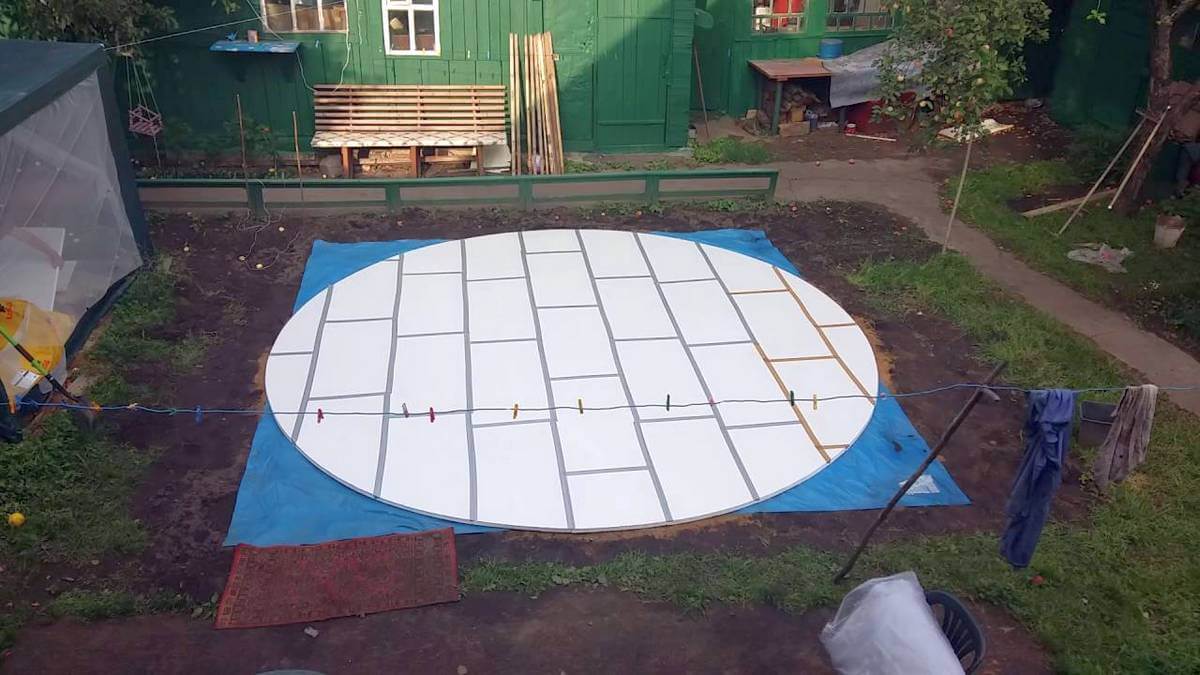 - Измеряем площадь надувного бассейна в рабочем состоянии и очерчиваем границы площади подложки. Для комфортного пользования надувным водоемом рекомендуется к площади бассейна прибавить минимум 50 см. Большие конструкции предполагают увеличение подложки относительно диаметра дна бассейна на 1 м.