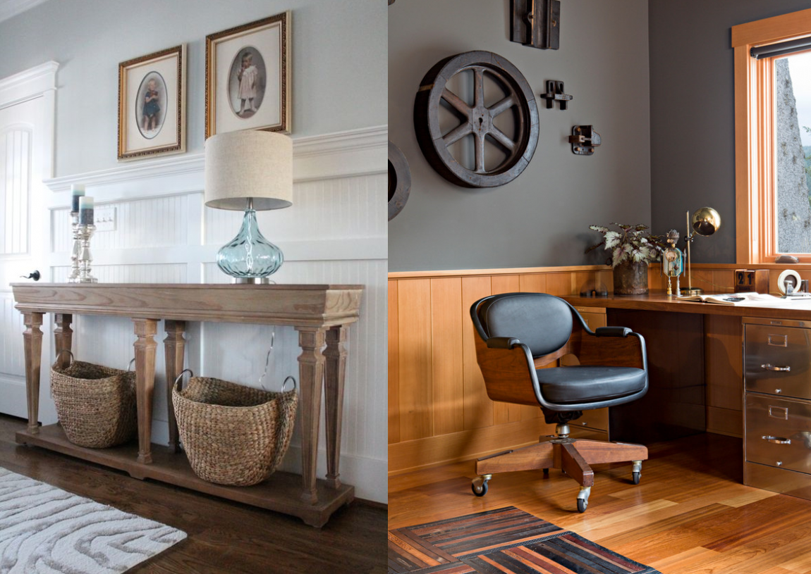 Зачастую деревом обшивали только нижнюю часть стены, чтобы защитить её от механических повреждений, которые могла нанести мебель.