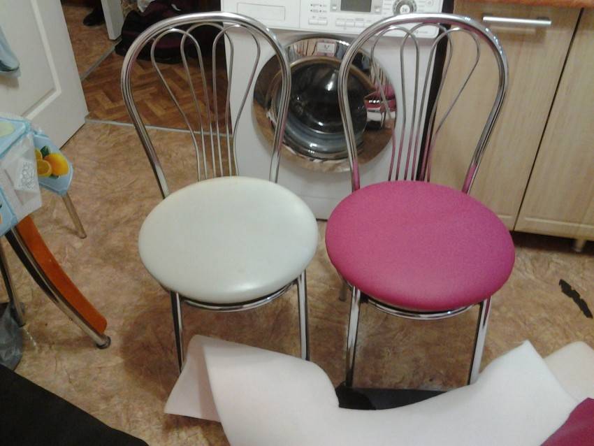 Цена зависит от конкретного материала и его объема. Берите с запасом, поскольку придется делать припуски. Некоторые и вовсе находят какие-то материалы дома, и уже ими перетягивают стулья.