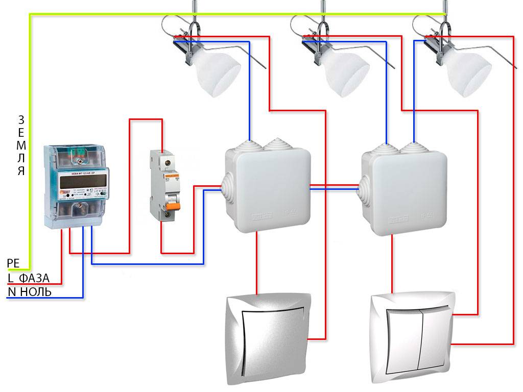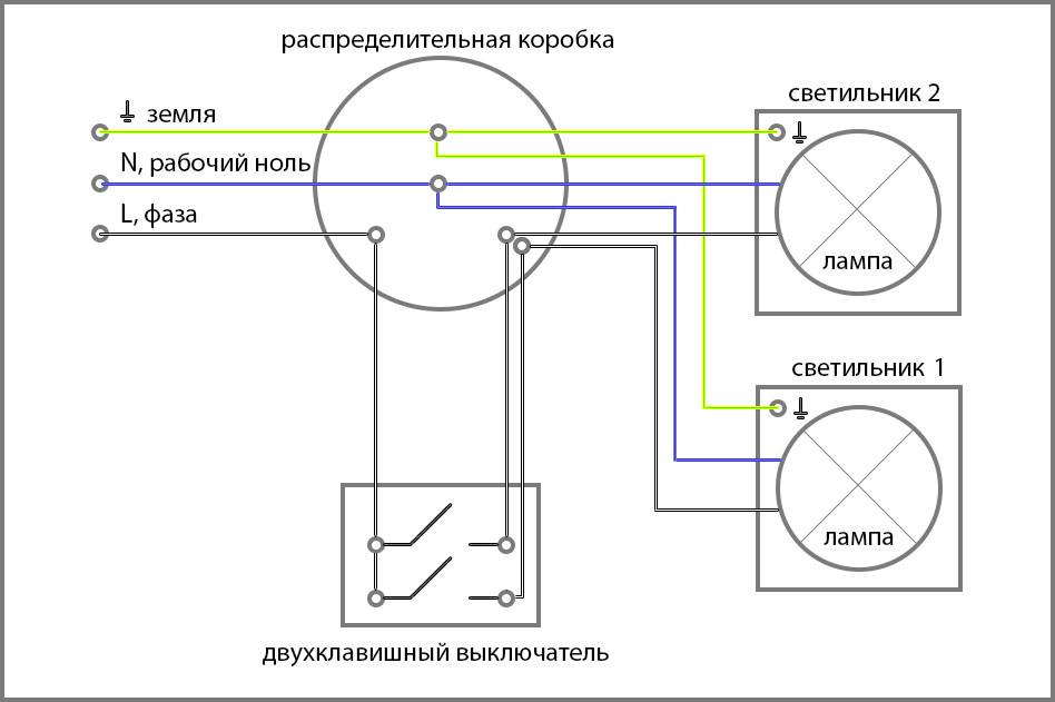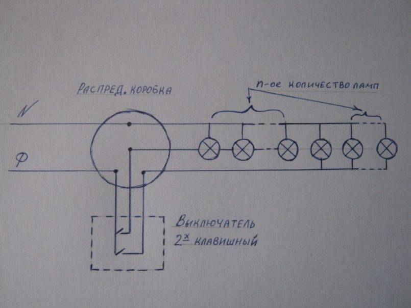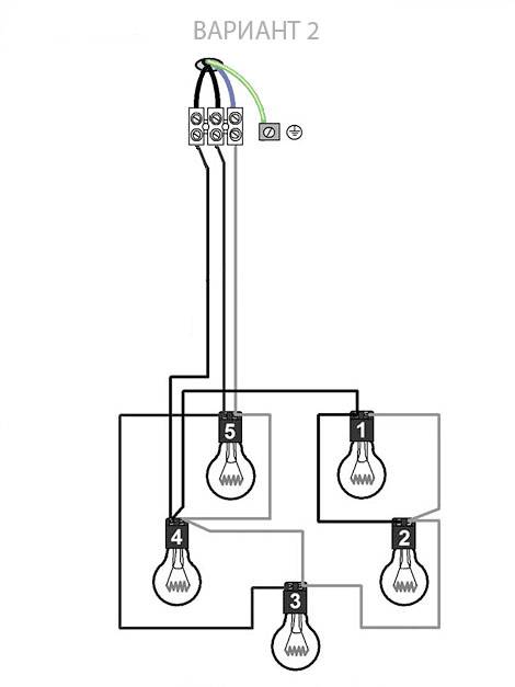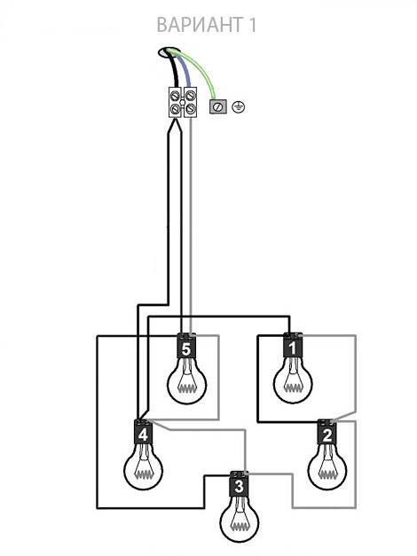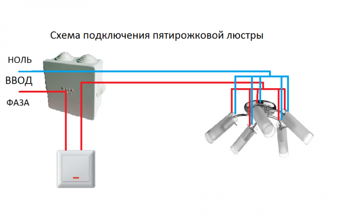 Подключение пятирожковой люстры к двойному (двухклавишному) выключателю