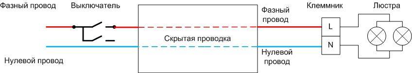 Однако на практике иногда встречается неправильное подключение: через выключатель проходит не фазный, а нулевой провод. То есть при отключении клавиши выключателя электропроводка остается под напряжением, несмотря на то, что освещение не горит. Чревато это тем, что возможно поражение электрическим током при замене лампы, при случайном касании оголенных частей плафона люстры либо при нарушении изоляции провода.