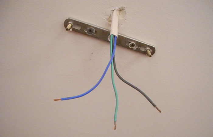 - с потолка свисает 3-х или 4-х жильный проводник;