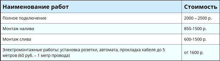 Ориентировочные цены на подключение стиральной машины профессионалами