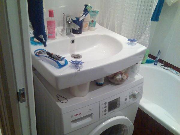 В некоторых городских квартирах эта комната довольно небольших размеров, в таком случае можно поместить вашу помощницу под раковину, только до покупки сделать необходимые замеры, чтобы правильно подобрать высоту.