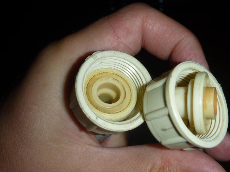 С осторожностью нужно использовать паклю при подключении штатных шлангов. Она склонна к разбуханию и может порвать пластиковые гайки
