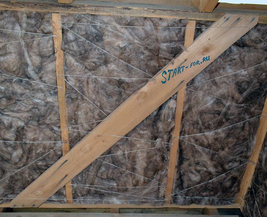 При раскрое утеплителя вырезайте квадраты с припуском в 50мм по ширине со всех сторон. Так минеральная вата ляжет плотно, без пропусков и зазоров.