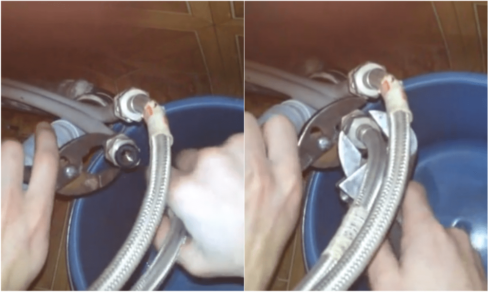Далее осматриваются места крепления гибкой подводки к водопроводу, если вы перед тем, как заменить смеситель на кухне, уже проверяли шланги, то можно сразу приступать к их отсоединению. Делать это проще всего с помощью сантехнического ключа, но подойдет и рожковый соответствующего размера.