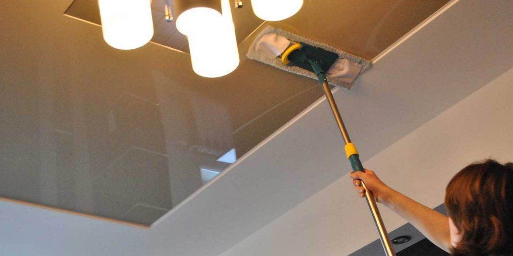 Это значит, что важно грамотно подбирать моющие составы и методы уборки. Мытье потолка следует осуществлять, используя мягкую ветошь или губку