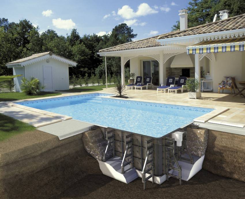 Рассмотрим процедуру строительства на примере бассейна углубленного в землю.