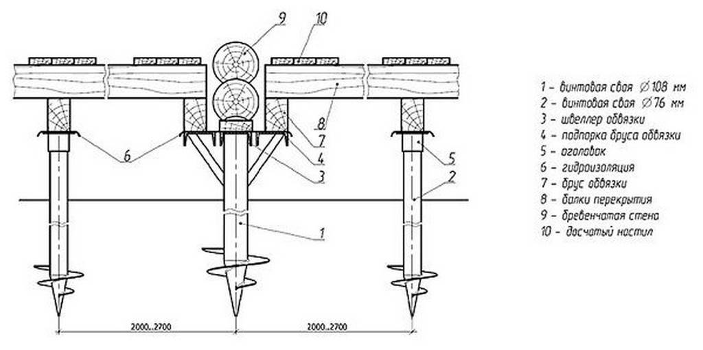 Помимо винтовых свай для фундамента можно использовать буронабивные и забивные опоры. Расстояние между соседними силовыми элементами выбирается, исходя из необходимого количества свай, которое, в свою очередь, зависит от суммарных нагрузок и несущей способности фундамента.