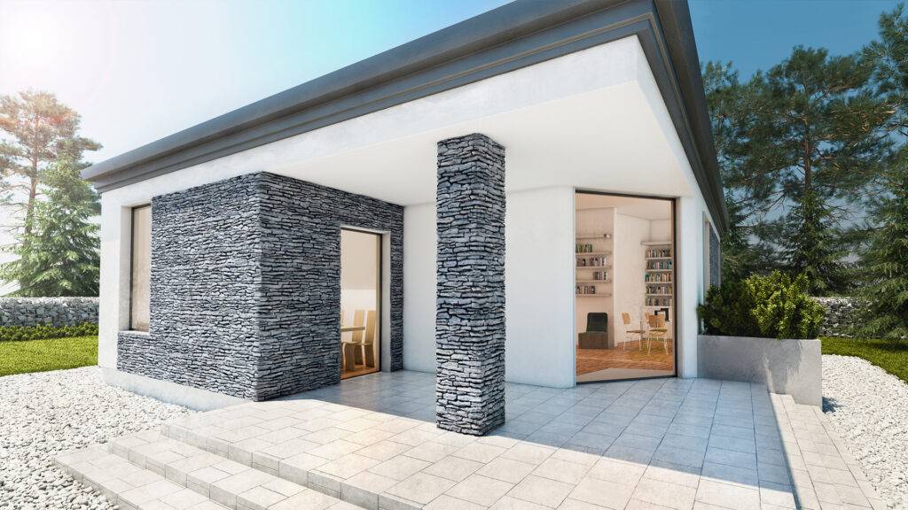 Первый вариант реализовать довольно сложно по простой причине — в России готовые проекты домов редко включают эту технологию строительства, а профессионалов, способных применить ее на практике, очень мало. С другой стороны, большой популярностью пользуется дом с каменным фасадом. Отделка фасадов домов этим натуральным материалом очень модна и применима как к традиционным, так и к современным домам.