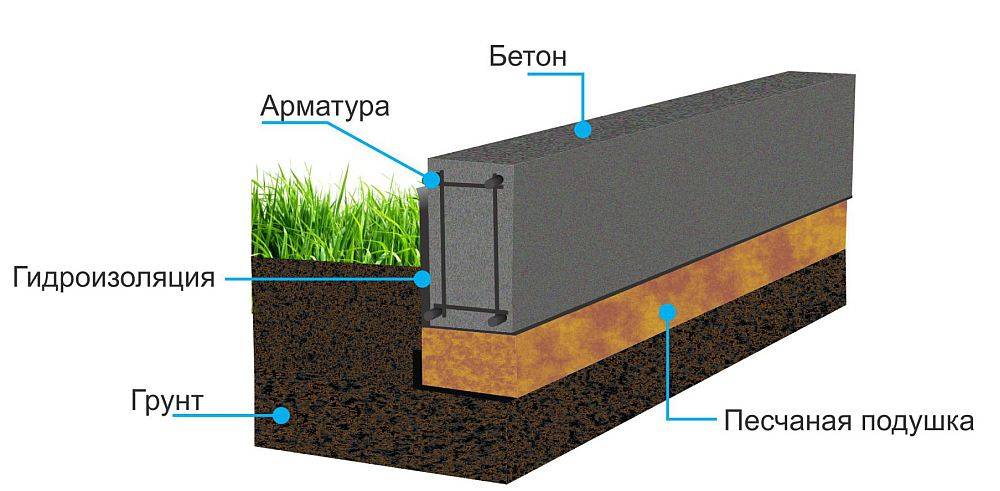 Высота ленточного фундамента должна быть минимум в 2 раза больше его ширины. При таких условиях в нем не возникает поперечная деформация.