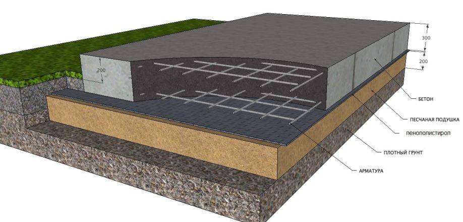 Плитное основание заглубляют не более чем на 40-50 см. Его называют «плавающим», поскольку при сезонном пучении грунта оно может свободно перемещаться.
