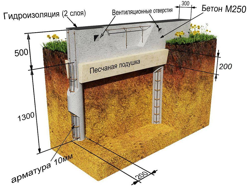 - Глубину залегания грунтовых вод. Если они протекают близко к поверхности почвы, придется отказаться от устройства погреба.