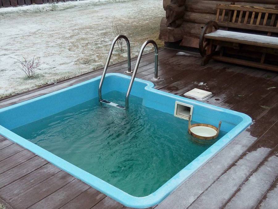 Устройства такого типа имеют небольшие габариты и оборудованы функциональной лестницей. Планировка купели выполняется совместно с проектированием бани.